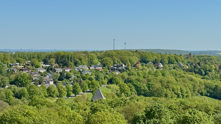Spannend dabei: Der Blick in Richtung Norden zeigt nicht nur eine Hügelkette, sondern direkt dahinter die Spitze des Florianturmes, der in der Mitte Dortmunds liegt und den wir ebenfalls besichtigt haben.