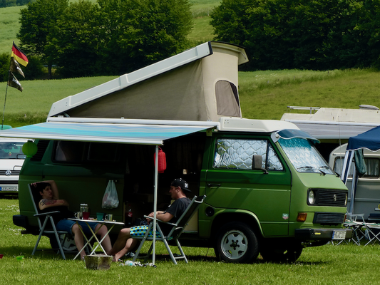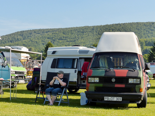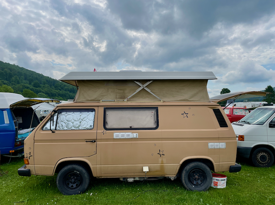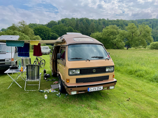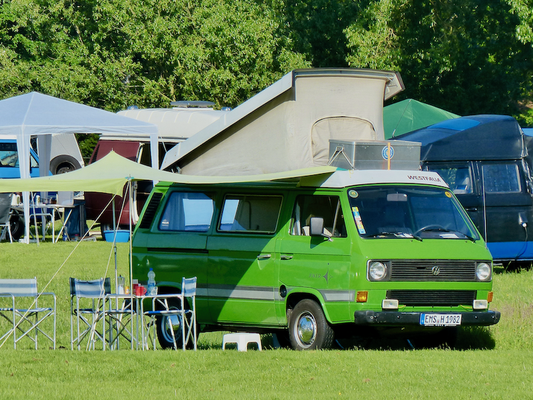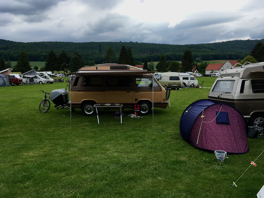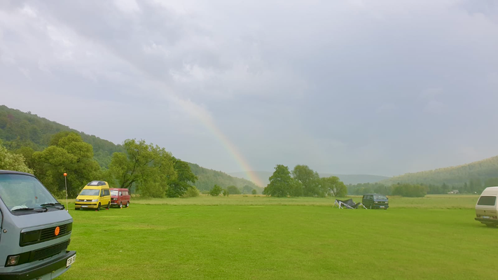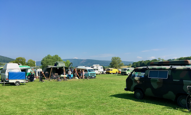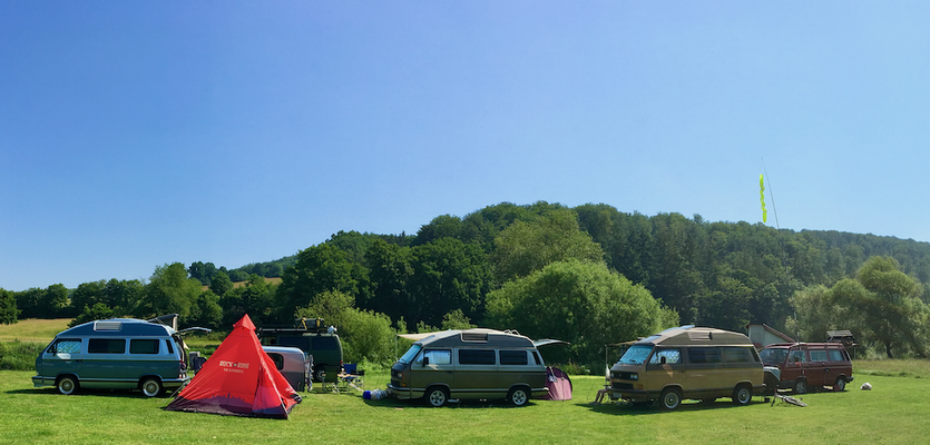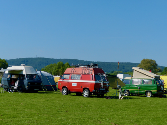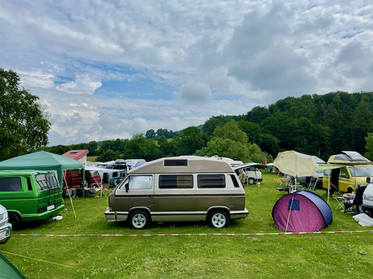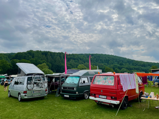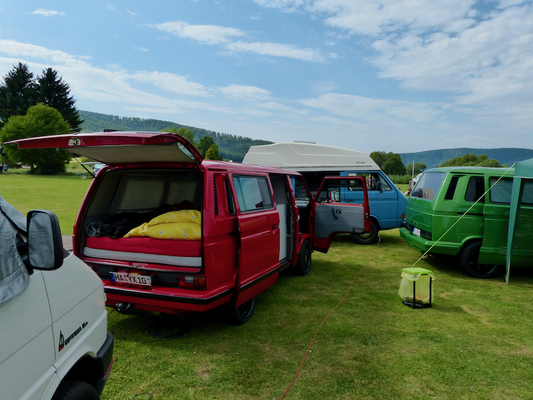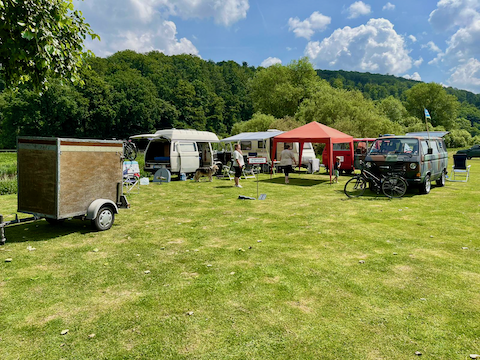 Wegen Corona kein offizielles Treffen. Der Campingplatz an sich durfte jedoch öffnen. Deshalb verirrten sich ein paar Buscamper an diesem Wochenende auf den Platz:-)