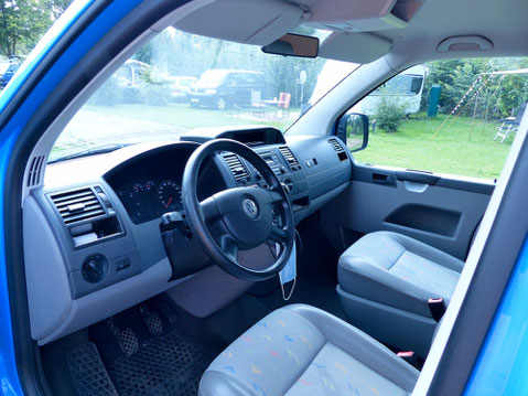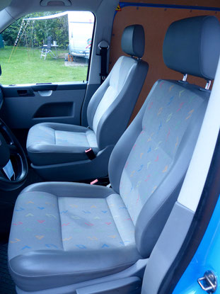 Serien-T5.1-Sitze in Grau. Das Stoffmuster erinnert noch ein wenig an T4-Stoffe.