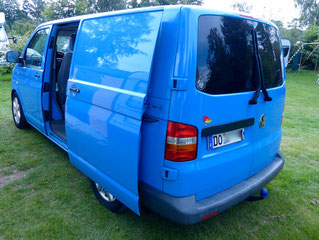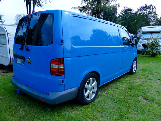 Carstens T5 Kasten hat eine sehr seltene Farbe (R12 blau) und eine linksseitige Schiebetür, wobei auf der rechten Seite eben keine ist. Was es nicht alles zu bestellen gab und gibt! Der Bus hat schon rund 358.000km auf dem Tacho und läuft bestens. Bei dem zum Teil schlechten Image des T5.1 ist das doch mal eine gute Nachricht! Lediglich eine defekte Steckverbindung lies ihn mal liegen bleiben.