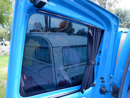 Kleine Gardinchen dürfen bei Bedarf das Heckfenster verdunkeln.