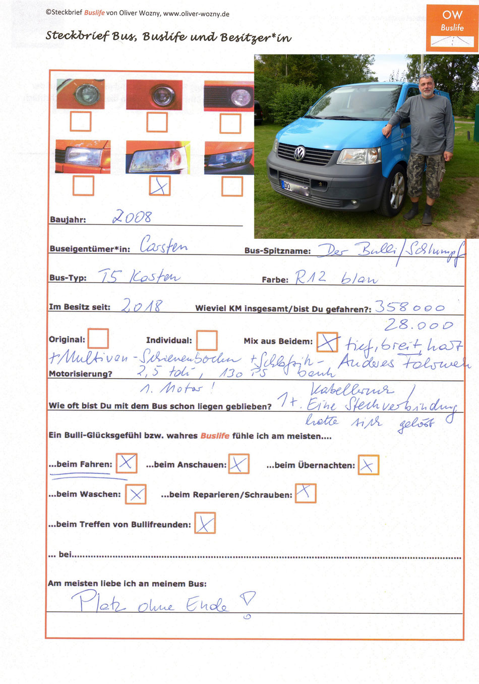 Wahres Buslife ist für ihn eigentlich alles: Fahren, Anschauen, Übernachten, Schrauben, Waschen und auch das Treffen von Bullifreunden. Aber am meisten ist es