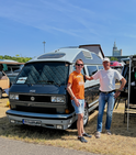 Mein T3 Dehler Profi. (Bild mit Kalle Dehler auf dem Bus-Festival 2023 in Hannover).