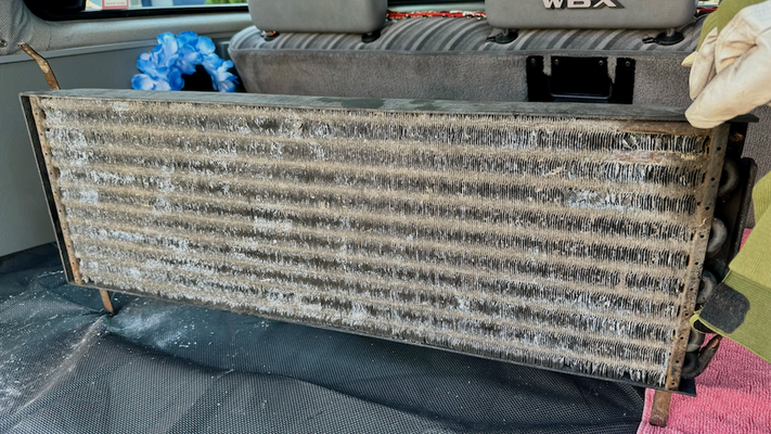 Sehr gut in Schuss ist dagegen das geformte Kunststoffteil sowie der Verdampfer im Bereich des Armaturenbretts. Auch der Kompressor macht einen soliden Eindruck.
