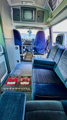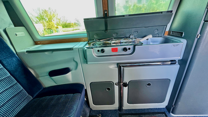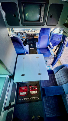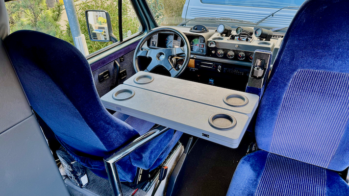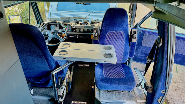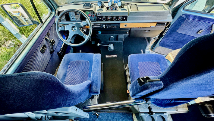 Die Möbel machen einen super Eindruck: stabil, gepflegt, keine Risse. Und mit gerade mal rund 150.000 Kilometern hat er noch nicht viel auf dem Tacho. Das gepflegte Scheckheft gab es sogar noch dazu.