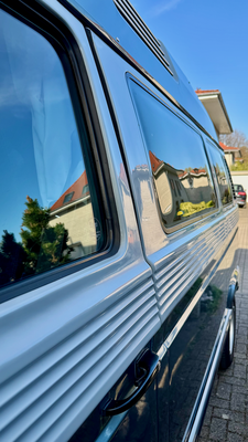 Da habe ich dann doch gewechselt: Ich habe meinen bisherigen T3 Dehler Profi verkauft, um einen anderen zu kaufen. Beide sind in ähnlich gutem Zustand – wobei der alte sogar noch mehr Erstlack hatte als der neue. Aber auch bei diesem Bus gibt’s keinen Rost an den Nähten, sie sind original und das war mir sehr wichtig.